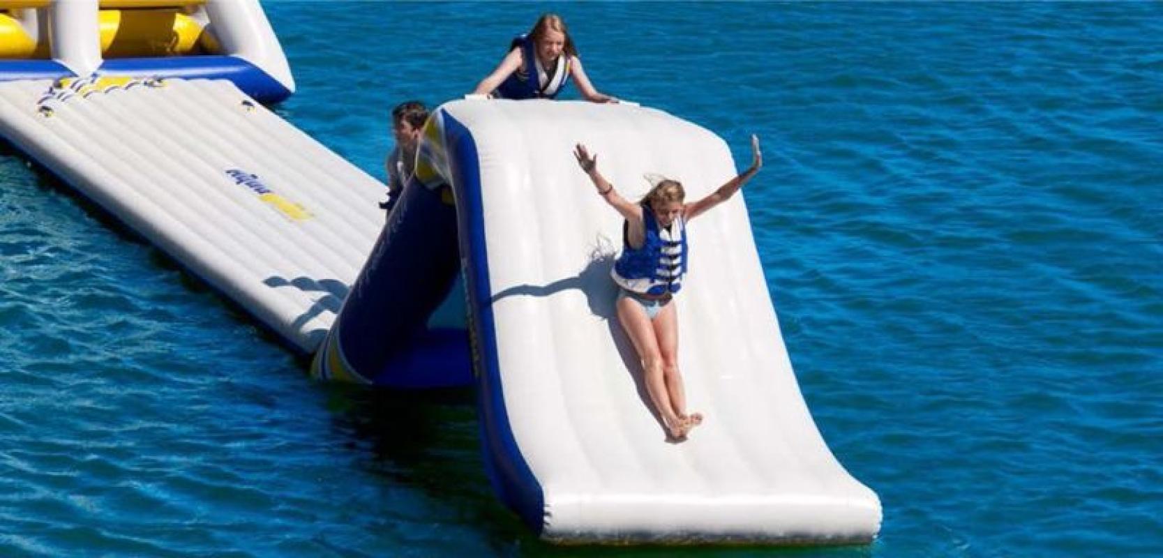 La plataforma hinchable Waterpark Runway de Aquaglide es la colchoneta preferida de los más pequeños durante una salida en barco. Reserva una unidad para tus próximas vacaciones.