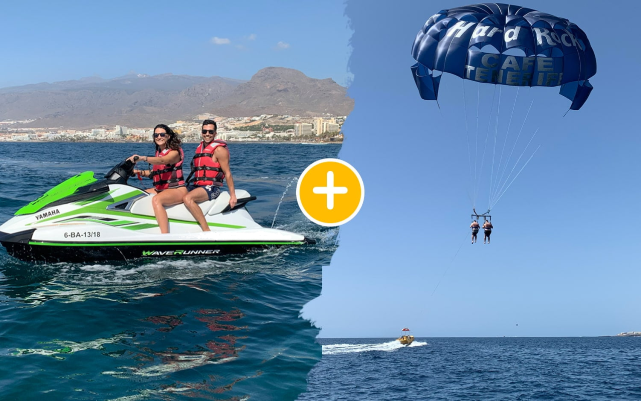 This activity pack includes a two-person jet ski rental for 1 hour and 10 minutes of Parascending for two.