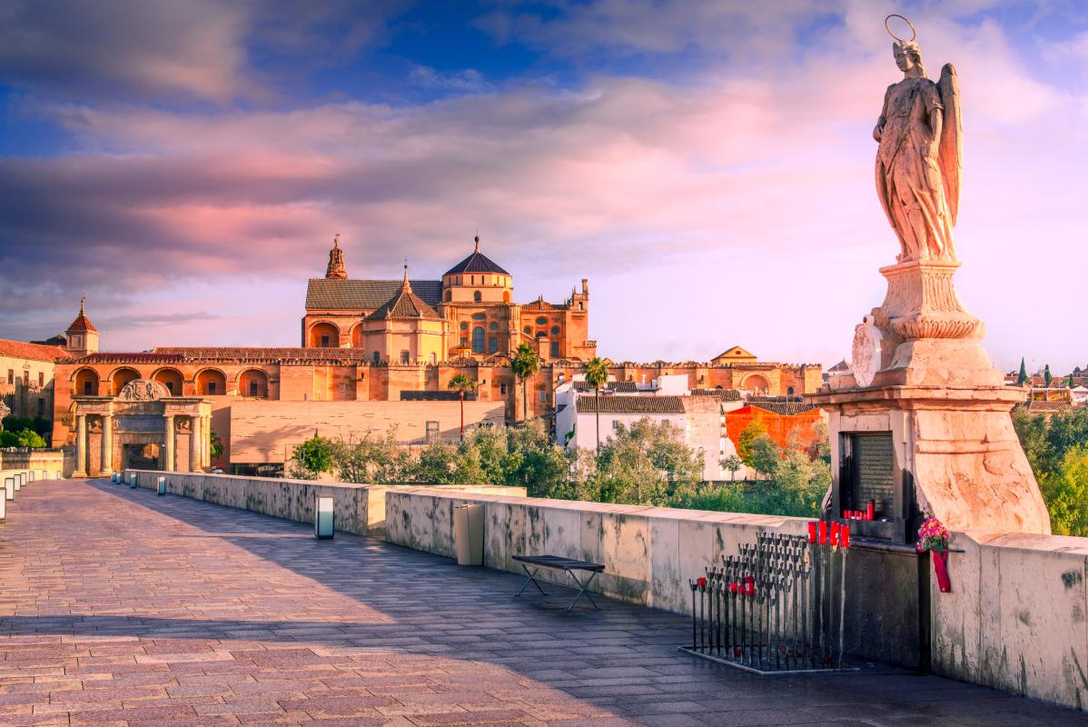 - We then arrive Corodoba at the Roman Bridge, an impressive construction from the 1st century B.C. that connects the city with the ancient Via Augusta. From here, we will have a privileged view of the Guadalquivir River and the imposing skyline of the city. From this point, you'll have approximately 5 hours of free time.